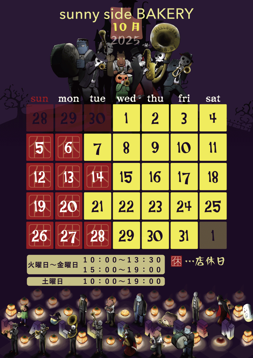 2025年10月の営業日カレンダーを掲載いたしました。